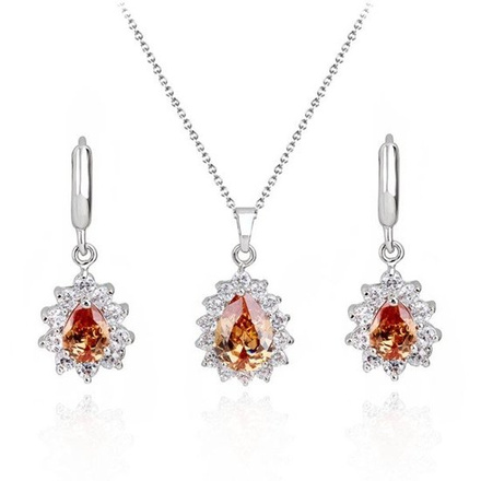 KPL 599/581 komplet kolczyki i wisiorek z szampańskimi łezkami plus łańcuszek, srebrny
