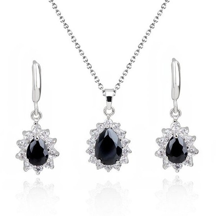 KPL 599/575 komplet kolczyki i wisiorek z czarnymi łezkami plus łańcuszek, srebrny