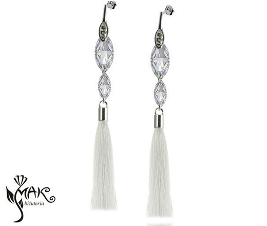 KOL781 kolczyki chwosty frędzle białe Swarovski Elements srebro 925