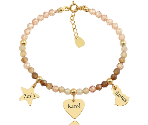 1732/2 bransoletka złocona z grawerem i kamieniami naturalnymi dla mamy