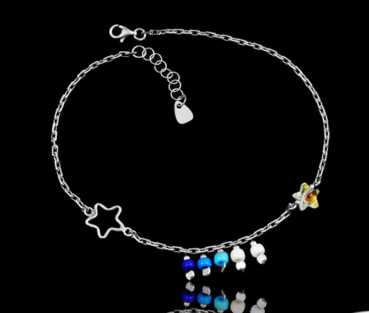 1552 bransoletka na stopę srebrna 925 koraliki i gwiazdki
