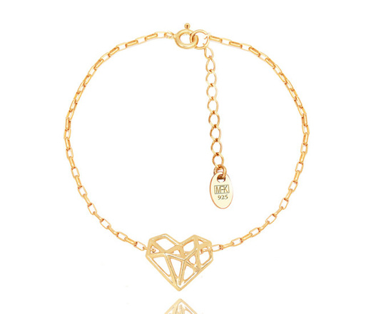1383/24 bransoletka srebrna 925 pozłacana z sercem ażurowym