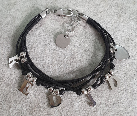 1292 bransoletka stal szlachetna na sznureczkach zawieszki literki