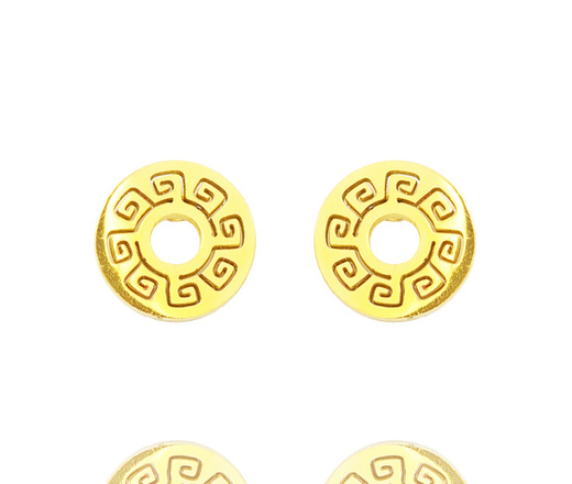 1232/26 kolczyki stalowe złote kółka 9 mm grecki wzór