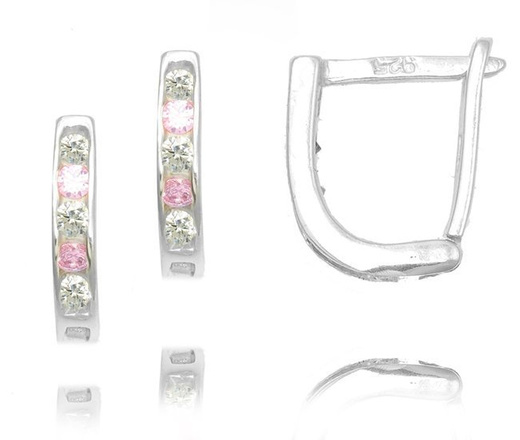 480/411 Kolczyki srebrne zapięcia angielskie delikatne z różową cyrkonią