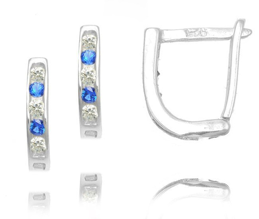 480/411 Kolczyki srebrne zapięcia angielskie delikatne z niebieską cyrkonią