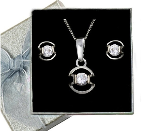 480/265 Kompet srebrny z cyrkoniami kolczyki wisiorek 925