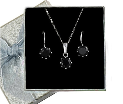 480/135 komplet srebrny z czarnymi cyrkoniami