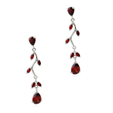 Kol 599/658 KOLCZYKI z rubinowymi łezkami, długie i Piękne, srebrne