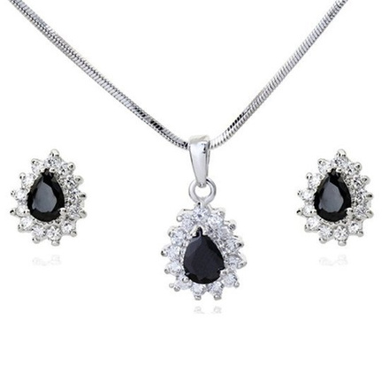 KPL 599/575 komplet kolczyki i wisiorek z czarnymi łezkami plus łańcuszek, srebrny