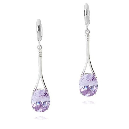 Kol 599/679 KOLCZYKI z jasnofioletową łezką ,długie i Piękne, srebrne