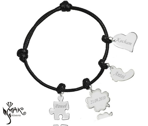 BR823 /13 BRANSOLETKA z grawerem na sznureczku puzzel