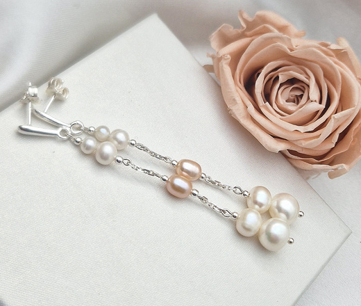 1882 Kolczyki srebrne 925 perełki hodowlane długie kolory