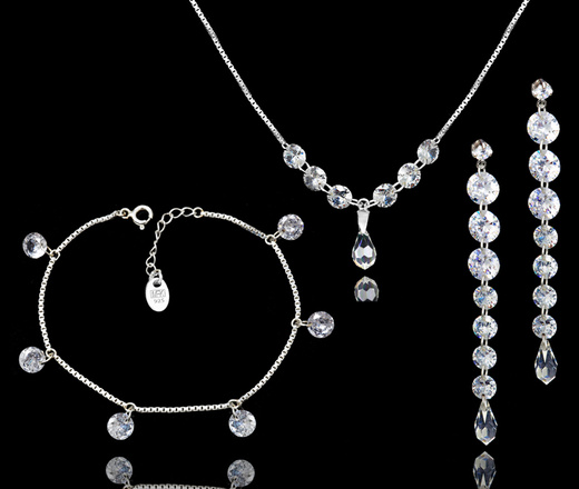 Komplet ślubnej biżuterii z cyrkoniami srebro 925 – naszyjnik, kolczyki, bransoletka 1816/10