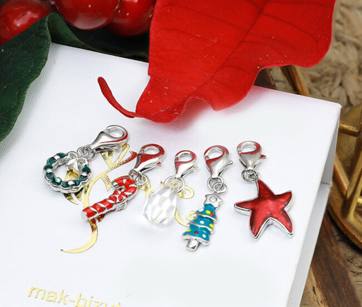 1596/12 sr 925 świąteczny komplet pięciu charms laska, choinka, wieniec, sopel, gwiazda