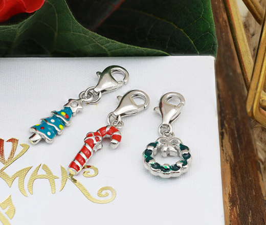 1596/23 srebro 925 komplet charms świąteczny laska, choinka, wieniec