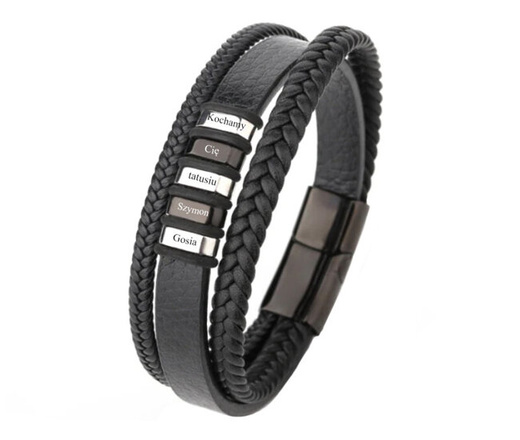 599/1141 bransoletka męska z grawerem skóra czarna