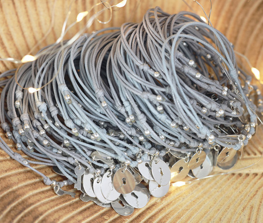 1344 BRANSOLETKA Z GRAWEREM stalowa na sznureczku