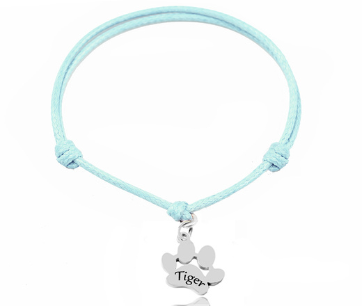 1717/12 bransoletka na sznurku z łapką i grawerem złota lub srebrna