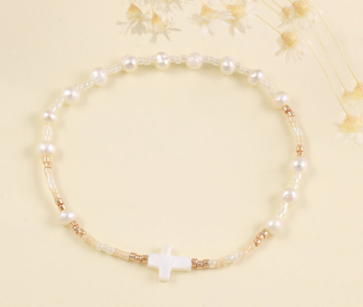 1571/20 bransoletka różaniec złota z krzyżem i perłami naturalnymi