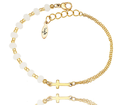 1571/22 bransoletka różaniec złota z kryształkami i krzyżem