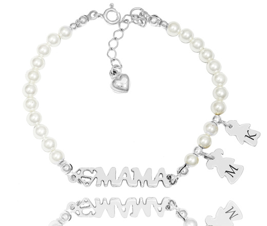 1396 Bransoletka z grawerem srebro 925 perełki rodzina