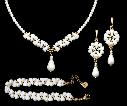 Komplet ślubny z perłami srebro 925 – naszyjnik, kolczyki, bransoletka 1816/7