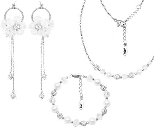1668 biżuteria ślubna srebrna 925 z perłami, kryształkami i kuleczkami disco ball