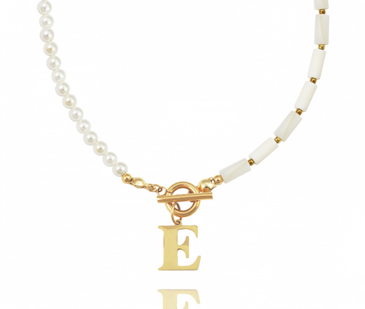 1585 naszyjnik stal szlachetna z inicjałem perły