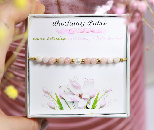 1746/3 różowa bransoletka z kamieniami naturalnymi i perełką dla babci zestaw