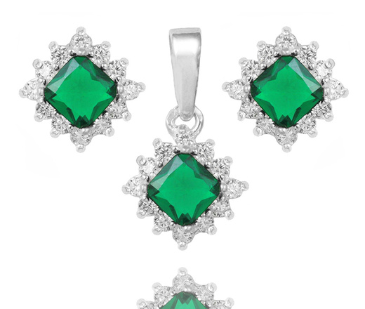 480/486 komplet srebrno 925 wisiorek z kolczykami i zielonymi cyrkoniami