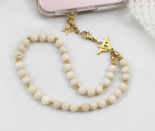 Smyczka do telefonu z grawerem 1761/5, kamienie naturalne beżowe