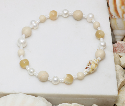 bransoletka na gumce z muszelek, pereł i kamieni naturalnych 1835