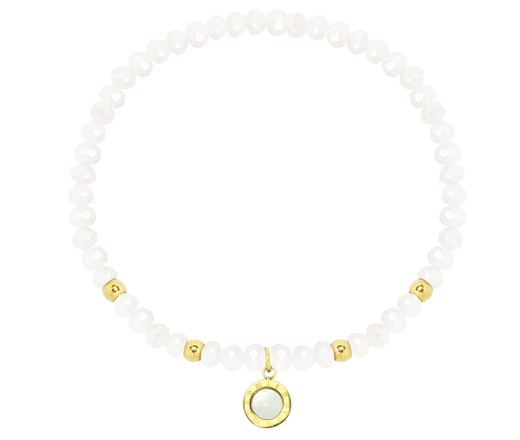 1445 bransoletka stal pozłacana kryształki białe masa perłowa