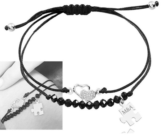 1052 BRANSOLETKA GRAWEROWANA podwójna połączone serduszka puzzel srebrne 925