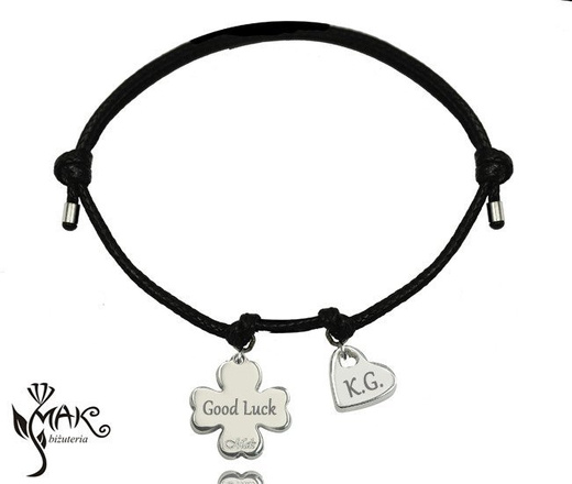 BR623 bransoletka na sznureczku z grawerem koniczynką