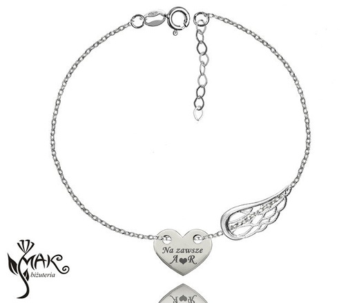 BR851 bransoletka grawerunek celebrytka serce skrzydło srebro 925
