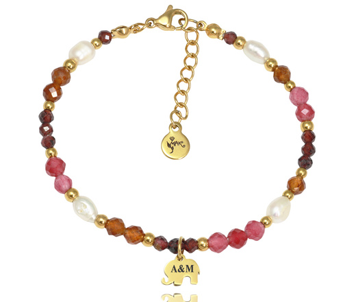 1859 bransoletka z grawerem turmalin, granat, perły
