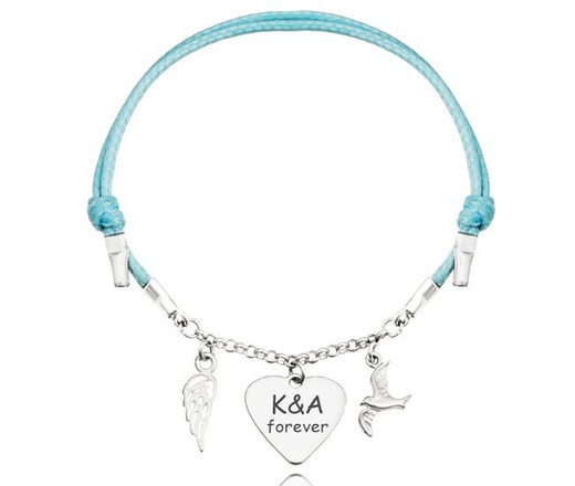 1151 bransoletka grawerowana złota srebro 925 na sznurku serce skrzydło kluczyk