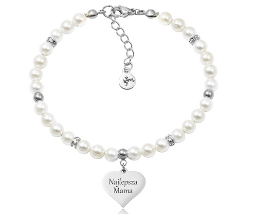 1746/11 Bransoletka z grawerem i perłami dla babci / mamy stal