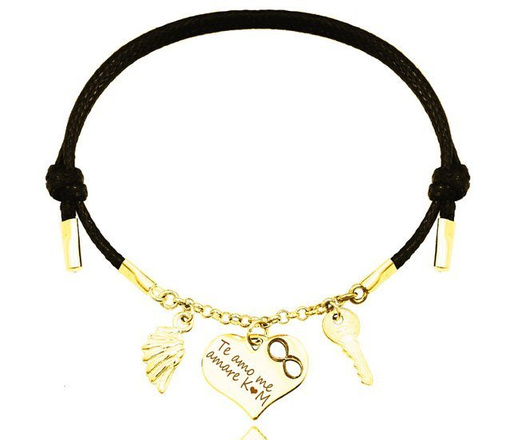 1151 bransoletka grawerowana złota srebro 925 na sznurku serce skrzydło kluczyk