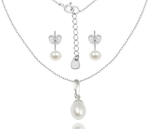 1548 komplet srebrny 925 - naszyjnik + sztyft perły małe 4 mm