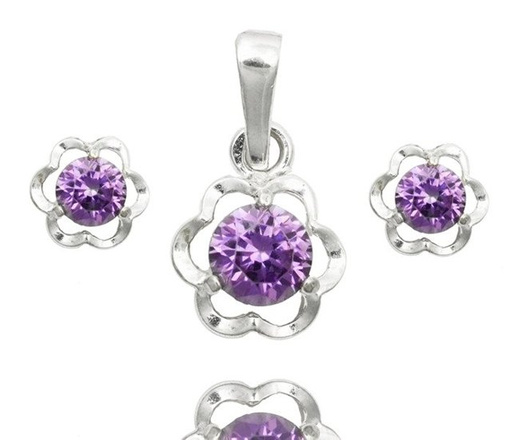 480/121 komplet srebrny kwiatuszki z błyszczącymi fioletowymi cyrkoniami