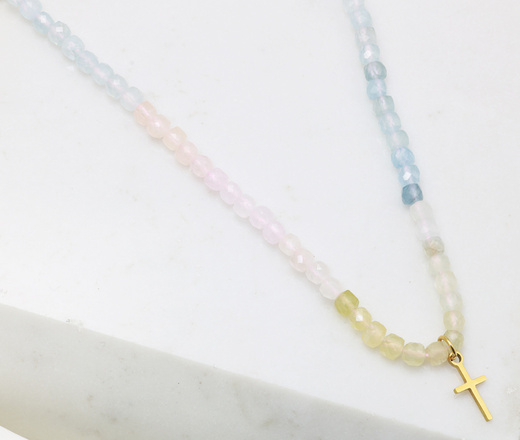 Naszyjnik z krzyżem i kamieniami naturalnymi (akwamaryn) 1799/4