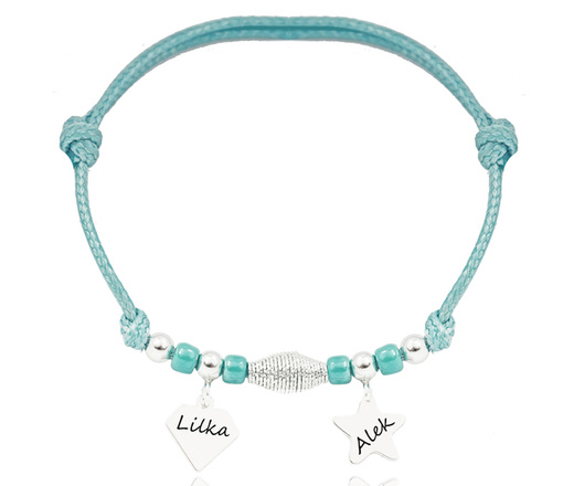 1355 BRANSOLETKA Z GRAWEREM srebrna na sznureczku