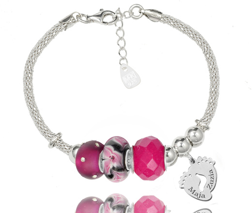 1305 bransoletka grawerowana stópki beads srebrna fuksja