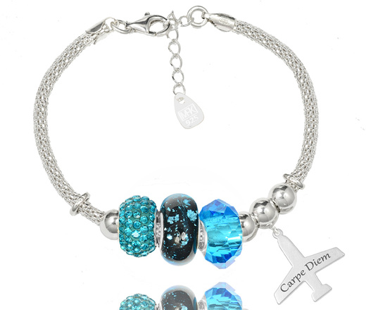 1305 bransoletka grawerowana samolot beads srebrna morska