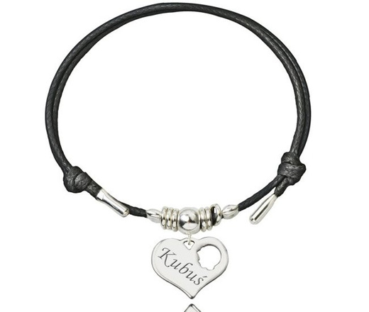 BR967 BRANSOLETKA Z GRAWEREM srebrna na sznurku serce chłopiec