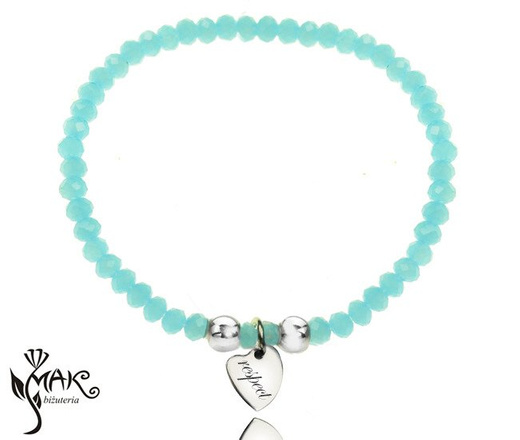 BR825 BRANSOLETKA Z GRAWEREM stal kryształki błękit serce