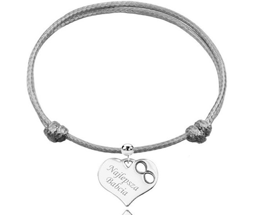 BR967 BRANSOLETKA Z GRAWEREM srebrna na sznurku serce infinity nieskończoność